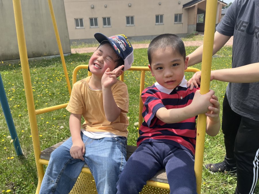 暑い日が続いていますが、わかばのお客様は夏休みに突入しました。夏休みの宿題に目を向けながら天気の良い日には、グラウンドでの自転車漕ぎやブランコ、滑り台といった遊具で元気に身体を動かしております。時折、「今日外行けるかな」、「ブランコ乗りたいです」等の声が聞かれており、屋外での活動を楽しみにしているため、今後は中庭にプールを出して水遊びをしたいなと考えています。