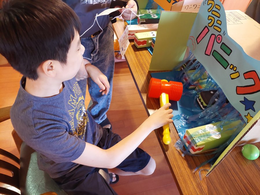 ばんだい荘わかば2025.09.06 ふれあいフェスティバルを楽しみました♪ 9月6日に施設内でふれあいフェスティバルが開催されました。夏祭りをテーマにお客様、職員一丸となって準備を進めてきました。当日はワニワニパニックや宝探し等のゲームコーナーとフランクフルトやかき氷等の軽食コーナーを回りながら、夏のイベントを楽しみました。お客様からは「ゲーム楽しい!」「食べ物美味しい!」とたくさんの声が聞かれました。今後もイベント行事をたくさん計画していきたいと思います。 ※写真についてはご本人及びご家族から了承を得て掲載しております。 一覧へ戻る
