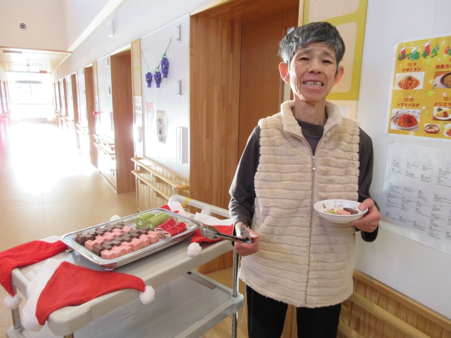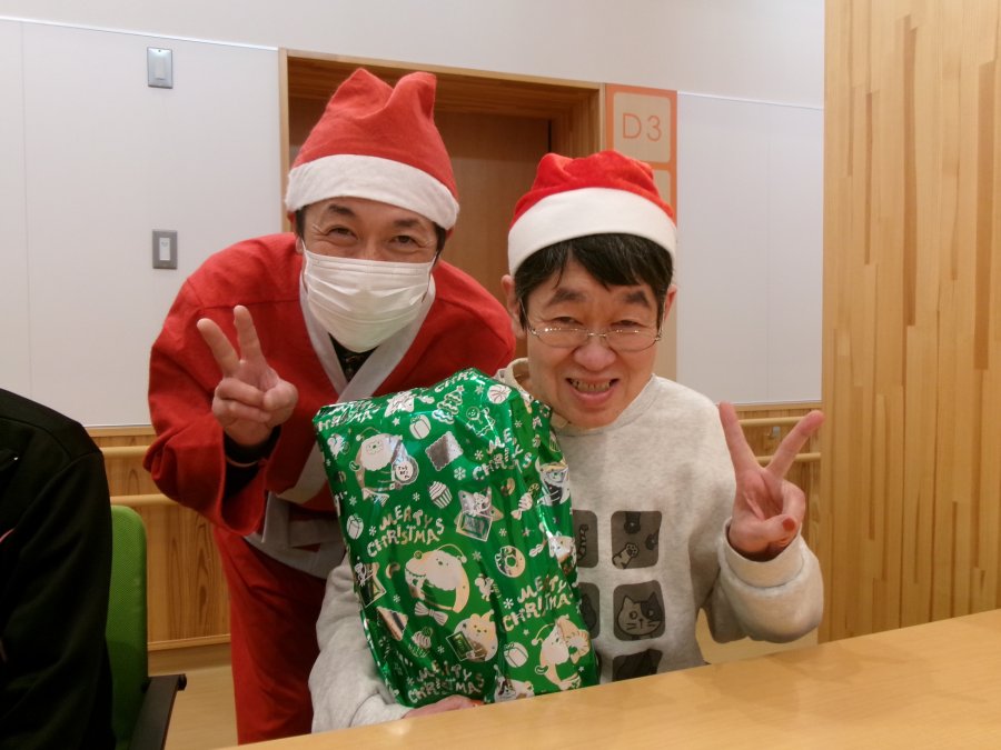 けやき荘2025.12.16 クリスマス会が行われました! 12月4日にクリスマス会が行われました。クリスマスアニメを鑑賞したり、クリスマスソングを合唱したりしました。また、ケーキバイキングも行われ、自分の好きなケーキを選び、美味しそうに食べていました。サンタクロースよりプレゼントを受け取り、嬉しそうにプレゼントを開けていました。 ※写真につきましては本人より許可を得て掲載しております。 一覧へ戻る
