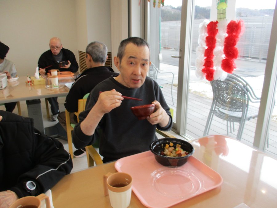 浪江ひまわり荘2026.01.28 「新年会」 1月7日(水)に新年会が行われました。お昼には豪華なちらし寿司を堪能し「お腹いっぱい」との話がありました。午後は各棟に分かれて宝探しや福笑いを行い「上手に出来た」「難しかった」などの話があり、終始笑いが絶えない時間となりました。 今年も職員お客様共に体調管理に気を付けながら、楽しい1年を過ごしていただけるよう支援をおこなっていきます。 《2月の行事予定》 ・ 3日 豆まき ・ 4日 自治会全体会・誕生会 ・16日 理髪 一覧へ戻る